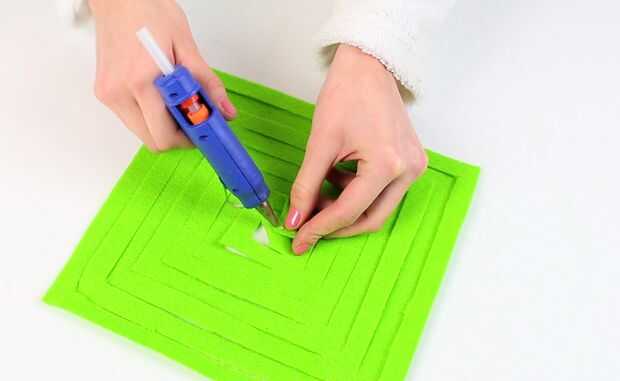 Continúe girando la pieza, hasta que todos los cuadrados son pegamento.