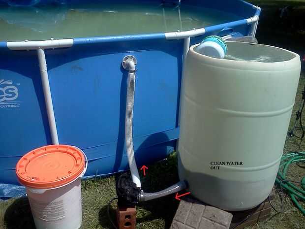 la solución simple sería una bomba mayor que fluye en el lado de la vuelta a la piscina, con una válvula si es necesario para el ajuste para que no vaciar el barril demasiado rápido o bien. realmente no tienen el repuesto $$ para este proyecto ahora, más adelante tal vez puedo conseguir una bomba más grande.