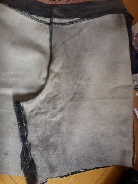 Pegamento el las costuras de la entrepierna de una manera que se endereza hacia fuera y terminar con una falda luego vuelta adentro hacia fuera y corte el exceso