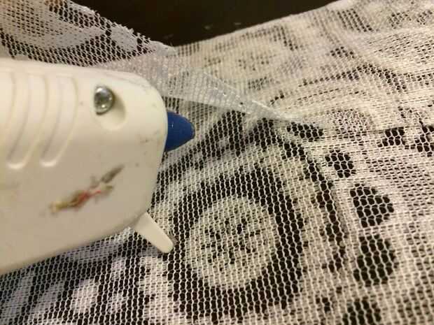 El borde del pegamento abajo en secciones pequeñas, sólo unas cuantas pulgadas a la vez porque el pegamento se seca muy rápidamente. IMPORTANTE: No olvide recoger el cordón como se seca para que no se pegue a la superficie de su trabajo en.