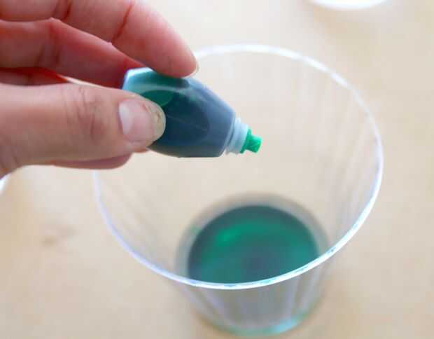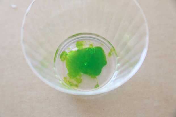 Utilizando uno de los vasos desechables, medido a 1 cucharada de alcohol con 10 gotas de colorante. No dude en mezclar los colores para crear colores nuevos. Su multa si utilizas más de 10 gotas: 1 cdas. Esto es sólo la cantidad mínima de colorante que te quieres conseguir una buena tonalidad.