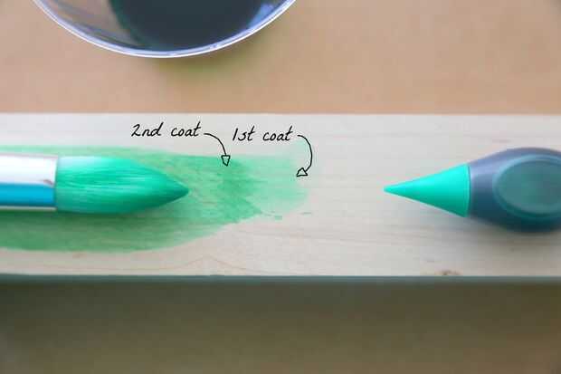 Lo maravilloso de esta mancha es que el alcohol se evapora rápidamente. Loco rápido. Puede aplicar una segunda capa a los 20 minutos. Sin embargo, encontré que necesitaba bastantes capas para lograr un color saludable, y así que después de la última capa, dejo los bloques durante la noche para absorber el color completamente y ser "duro en seco."