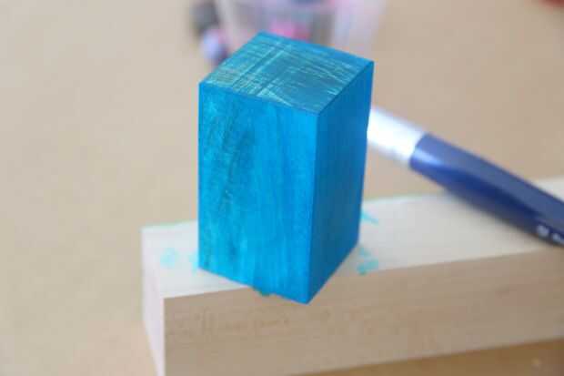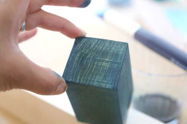 La veta, o los lados de las tablas y para mis bloques: los fondos y tapas, "beberá" encima de la mancha diferentemente que otras partes de la madera. Para mis bloques, que significó aplicar mancha más a la veta, pero esto podría ser diferente para diferentes tipos de madera. Algún grano final puede absorber manchas más fuertes y aparecen más oscura que otras partes.