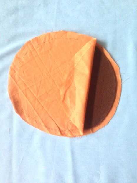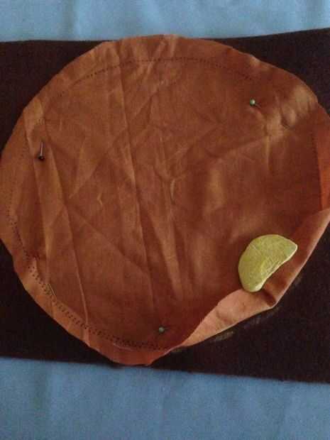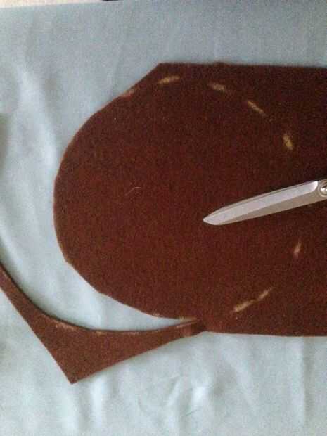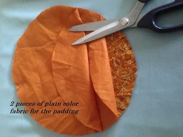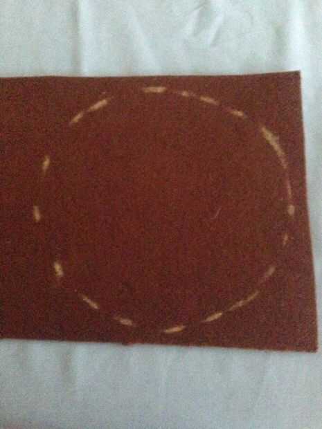 Doblar el margen de costura tejido plano como se muestra en la imagen 1 y marca alrededor con una tiza de tela en el fieltro grueso para obtener la medición. (imagen 2) para el relleno. Corte en el fieltro, coloca a la tela entre los dos y coser el relleno.