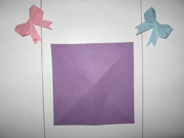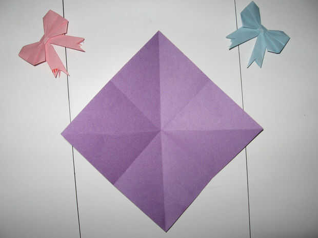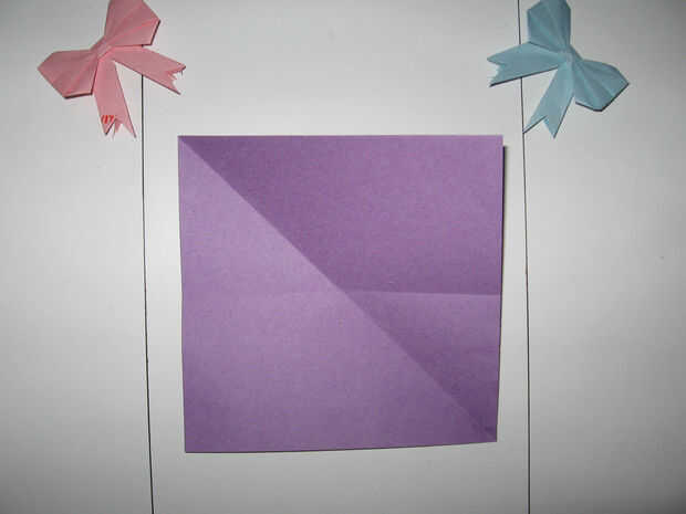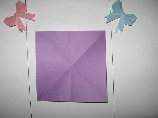 # Luego vas a abrirla y entonces otra vez dóblalo diagonalmente al revés como se muestra.