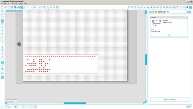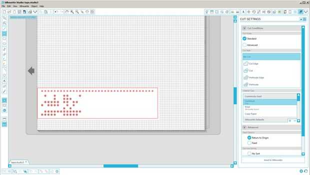 Mediante el estudio de silueta, establecer el gráfico para impresión. Tuve que cambiar el tamaño del documento en estudio de silueta a una altura de 2,037" y una frontera total que tenía una altura de 2,117". Esto será diferente dependiendo del ancho de la tabla y en el tamaño de los agujeros y cómo coinciden con los agujeros ha perforado.