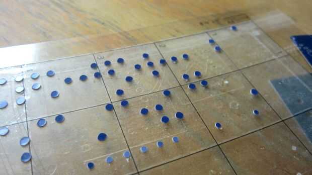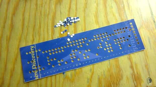 Tiempo de limpieza! Tomar la pieza cortada en el respaldo y comenzar limpiando los agujeros! Idealmente, la mayoría de ellos debe salir bastante fácilmente, pero de vez en cuando puede "colgar chads" que usted necesita para deshacerse de. Usé un destornillador pequeño para ayudar en el proceso.