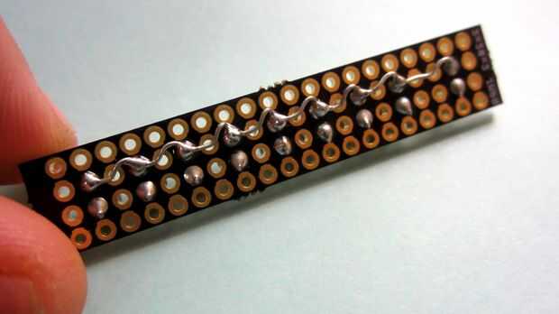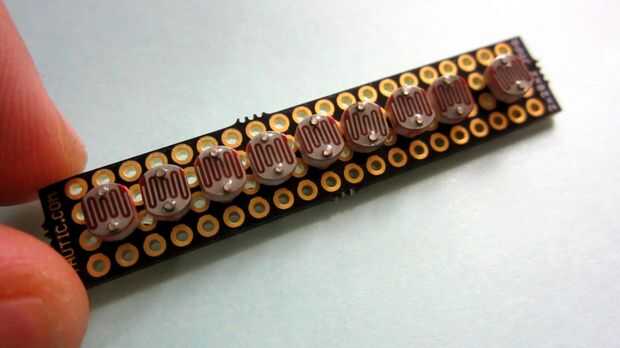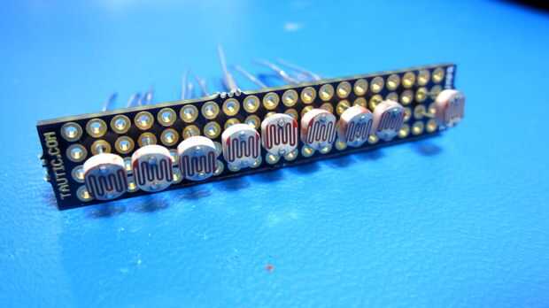 Suelde los 10 fotorresistores a un pedazo de perfboard. Perfboard que hemos utilizado consistió de 2 x 2 x 20 columnas con conexiones horizontales. Suelde los fotorresistores entre estas dos columnas - aunque si configura las conexiones eléctricas, usted puede utilizar cualquier tipo de perfboard.