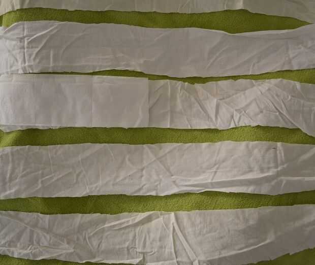 Corte cada una rayas en piezas largas como papel higienico de 2/3 plazas.