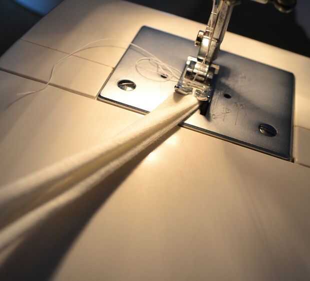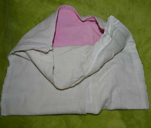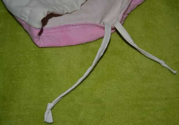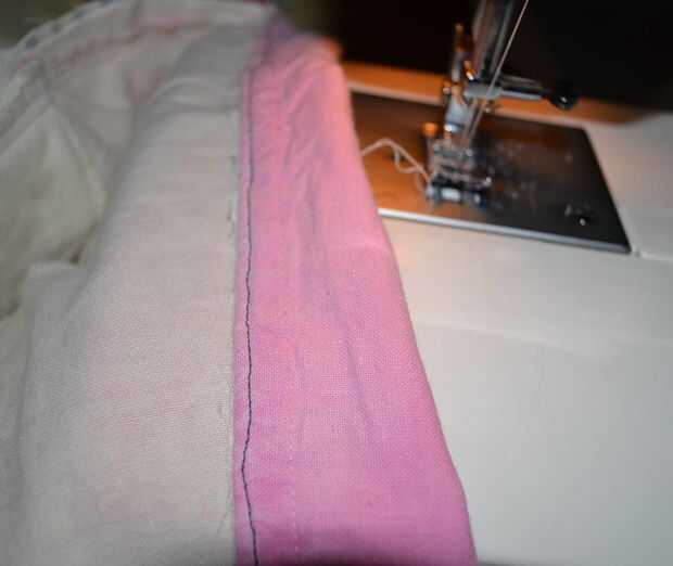 -doblar por la mitad la pieza rectangular de tela y coser los lados juntos.  Doblar el borde de la bolsa de pocos centímetros y coser, dejando un agujero para la cinta.