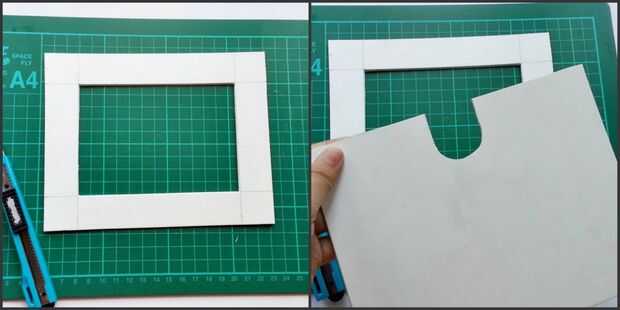 Recortar el marco (la pieza con fronteras) tan cuidadosamente como sea posible, trate de mantener la estructura lo más intacta posible. Cortar la forma del arco boca abajo de la otra espuma tablero pieza perfectamente así.