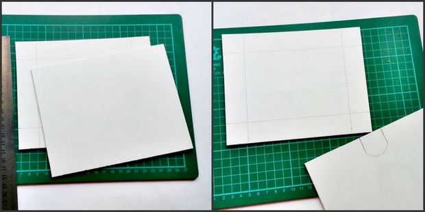 Dibujar 1 borde de pulgadas alrededor de cualquier una sola pieza, se trata de la parte delantera de la estructura de la foto y un derecho de la forma del arco hacia abajo en la parte media superior de la otra pieza, se trata de la parte posterior del marco. Véase el cuadro 2 de la 1er foto collage de este paso.