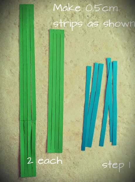 Hacer tiras de 0,5 cm como se muestra en la imagen. Mantener los extremos de las tiras se unió a ayudará a tejer cómodamente y fácilmente.
