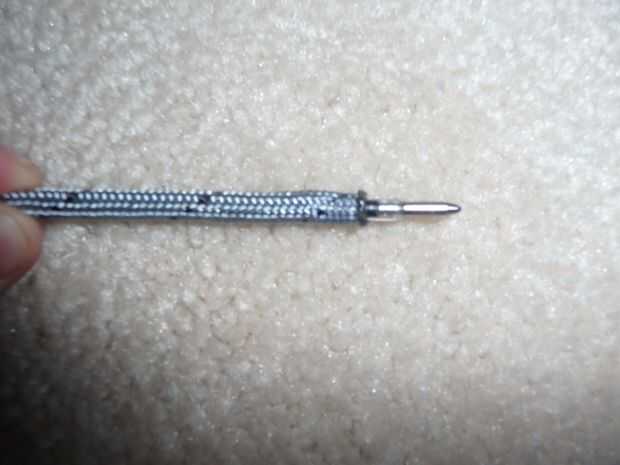 Luego tomar su mechero o fuente de calor y derretir o preparar el cable para el pen pero cuidadoso la pluma puede derretir y hacer un lío manchado por toda la superficie de trabajo. Asegúrese de preparar el cable un poco la pluma para mantenerlo tal como se muestra en la imagen.