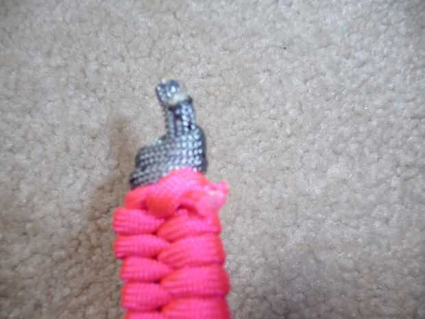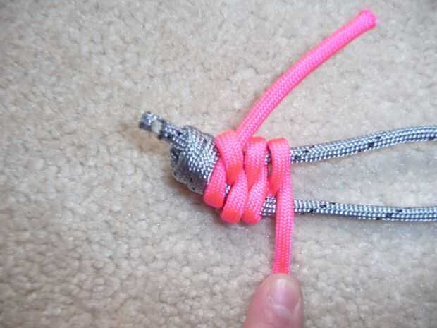 El nudo que he utilizado es muy simple es solo una y nudo que continúa como te gusta. Es una buena idea para dejar espacio para el cable para poner en una caja o bolsa. el nudo del principio esta en la foto.