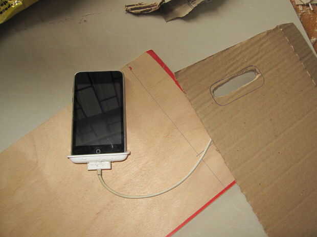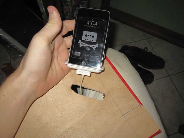 Entonces usted cogeun lápiz o marcador y dibujar el contorno de cualquier superficie a poner el muelle en el orificio. Cortar hacia fuera y la arena los bordes del agujero. Segunda foto fue tomada antes de lijar.