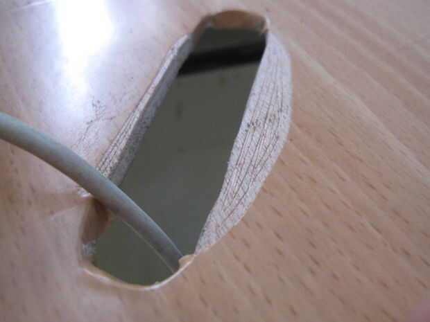 Si a poner material de la cubierta en la superficie, entonces hacer eso primero y corte un material de recubrimiento de la superficie. Esto hará que el pegamento bond mejor . Ver segunda foto. También se puede rasguñar la parte inferior de la base con una aguja por la misma razón.