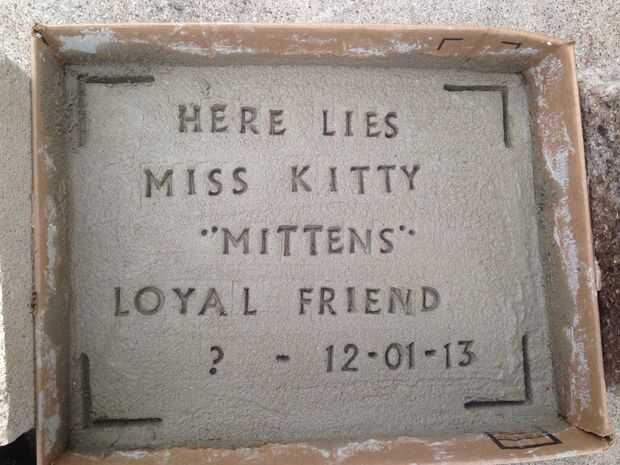 Una foto laminada de su mascota puede colocarse en este tiempo también. No se hundirán (si lo hacen, el mortero fue demasiado que moquea y necesita comenzar de nuevo.)