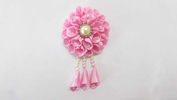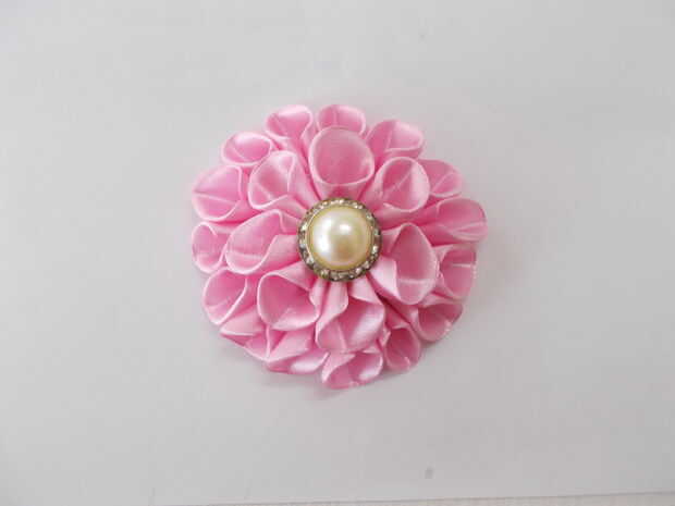 Pegar una perla decorativa en el centro y completar la flor de cinta de raso.