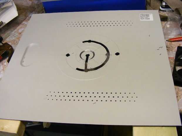 Donde se marcó el ventilador los agujeros de montaje, perfore pequeños agujeros, alrededor de 1/4" de diámetro.