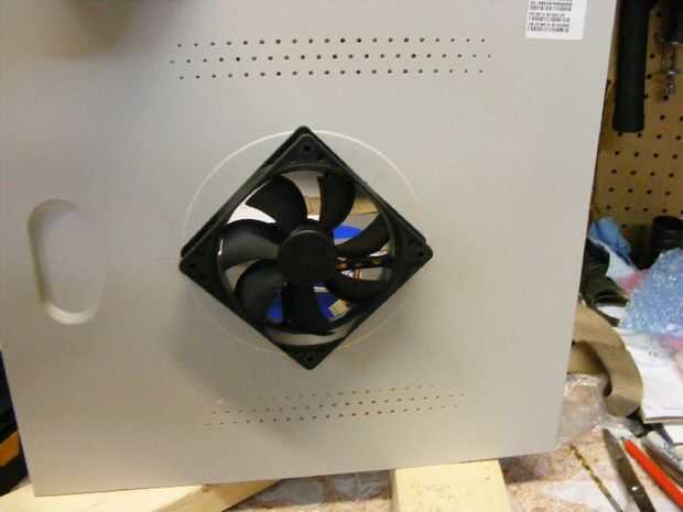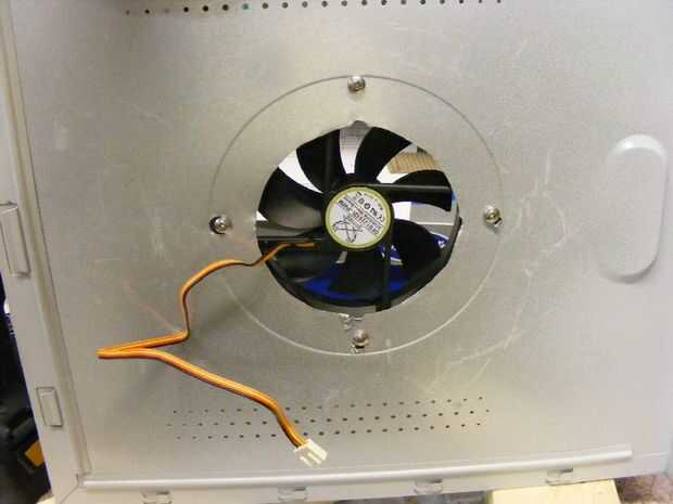 2) el uso largo y finos tornillos que pasarán totalmente el ventilador y el panel lateral, probablemente necesitarás una arandela al final del ventilador. Utilice Ny-Lok (tuercas de metal con plástico interior) tuercas para evitar problemas de aflojamiento por vibración.