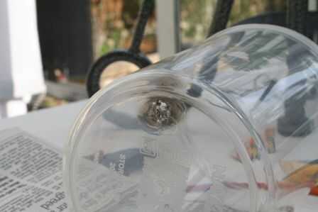 Cuando es capaz de capa, pegar un destornillador a través del plástico para hacer un agujero pequeño (aproximadamente del tamaño del tubo). Tenga cuidado de no hacerla demasiado grande si no va a ser muy complicado tratar de sellar otra vez!