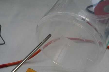 La parte inferior con el alumbrador del calor y hacer un agujero de esta manera: he probado este tipo de perforación de plástico antes y es muy frágil... esto es la más segura... pero las tinas son sólo un quid hasta noquear a ti mismo.