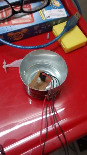 Para el chasis corto una lata 1/4 de su altura. y coloque el módulo en la parte inferior