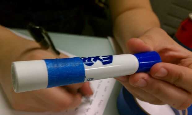 Envuelva el papel alrededor de la parte inferior del marcador, luego enrolle la cinta alrededor del borde del papel.