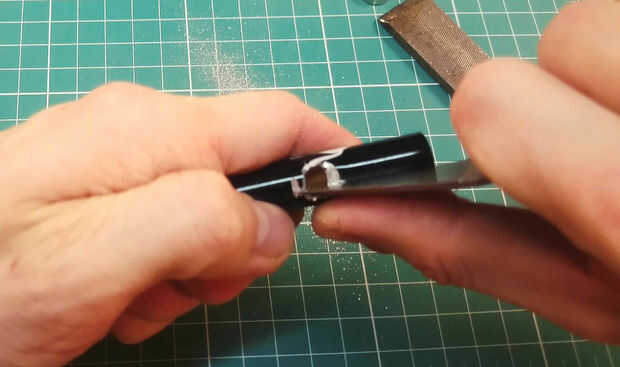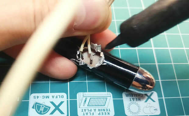 Puntero láser de desmontar y hacer un surco para llegar a los contactos eléctricos del botón. Algunos cables que les de la soldadura y relleno de huecos con pegamento caliente.