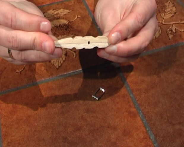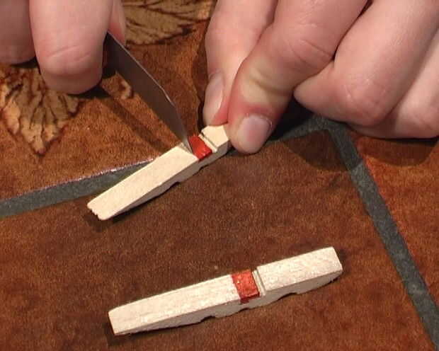Desarmar una clavija y corte con piezas de un cuchillo rojo como se muestra en las fotos.