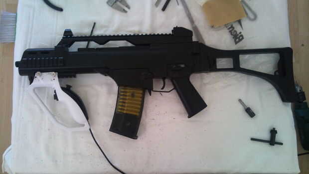 Para el cuerpo de G36C a hacer lo mismo como con el MP7A1. Con la G36C, tener en cuenta el espacio entre la revista poder y el Nunchuk. Coloque el Nunchuk Foregrip como frente lejos como sea posible en el carril del tejedor. ¿No desean ser capturados camping porque no se puede mover alrededor de lo que? También no coloque el Nunchuk Foregrip hacia arriba demasiado cerca en el foregrip de pistolas y taladrar los agujeros a través del riel Weaver. No que no ocurrió a mí.