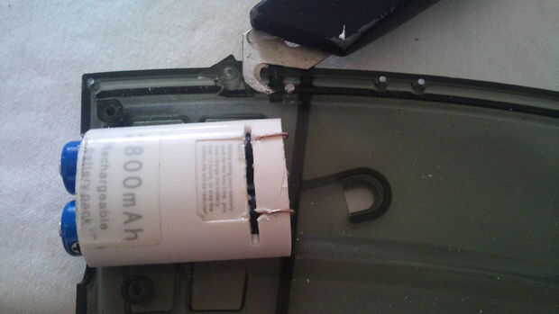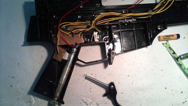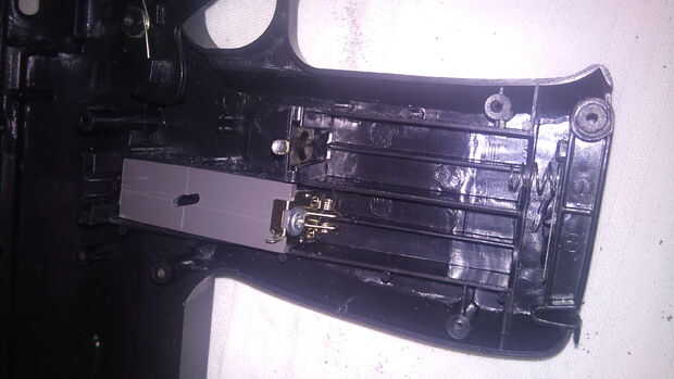 Imágenes dicen más de 1 mil palabras, dicen. Decidir en qué lado del cuerpo principal de armas vas a colocar los conectores de la batería! Te aconsejo la parte del cuerpo principal izquierdo de la pistola. En esta etapa inicial de la modificación he incluido una foto de una etapa posterior, por lo que se puede ver por qué elegí el lado izquierdo.
