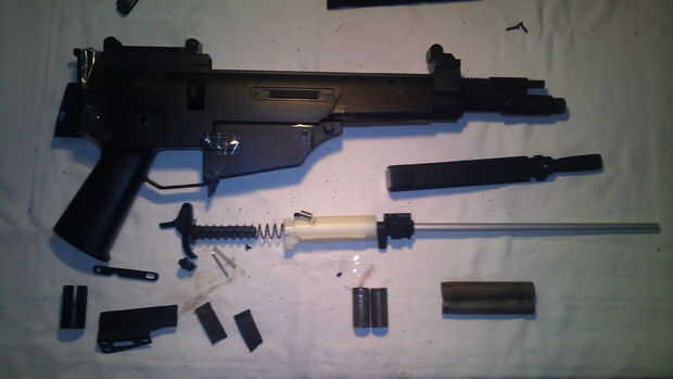 Retire el foregrip de la pistola y luego desmontar el cuerpo principal, como se muestra en la imagen.