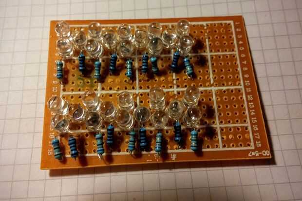 • El rojo LED se conectan dos en serie con una resistencia de 56 ohm.