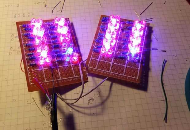 Luego agregar algunos conduce a todos los ánodos comunes (lado positivo) entre sí y conectar entre sí todos los cátodos comunes (lado negativo).