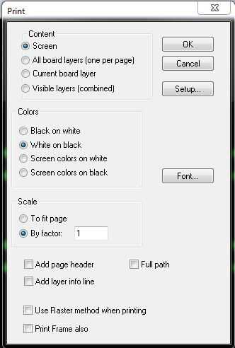 Ahora que hemos editado las almohadillas, estamos listos para imprimir el diseño. Cuando usted pulsa el botón de impresión se abrirá un cuadro de diálogo con algunas opciones. Para la selección de 'Contenida' que puede dejarlo establecido para 'Pantalla'. Para la sección de 'Colores', seleccione la opción 'Blanco sobre negro'. Esto nos dará cojines blanco y fondo negro. En la 'escala' sectioin seleccione ' por factor:' y poner un 1 en el cuadro de texto. Luego haga clic en aceptar e imprimir tu diseño en papel fotográfico.