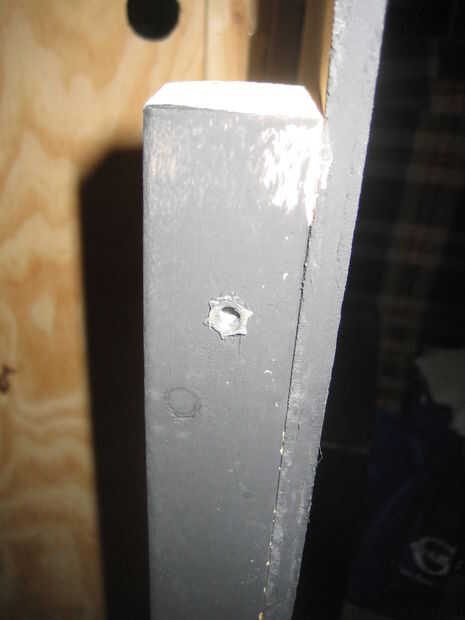 Con el panel frontal todo montado y en la posición abierta, sujeta la parte trasera a la 2x2s y había perforado de 9/32 agujeros en ambas piezas. Después de quitar el panel, abrí el agujero de 2 x 2 a 11/32 a una profundidad de XX y martillado en mi T-nuts. La parte difícil de esto es instalar las tuercas sin dañar el panel lateral o haciendo hincapié en las bisagras. Te recomiendo colgar 2 x 2 sobre el lado de un banco de trabajo si se puede, por lo que está tomando toda la fuerza del martillo.