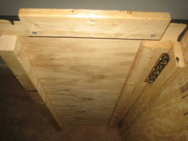 Luego, ingresé a las tiras de estructurales. Sujeta las dos piezas juntas donde quería sentarme y atornille las bisagras unas pocas pulgadas de la parte superior e inferior. Luego atornilla las tiras al ras con el borde de los paneles laterales, coloca todo el conjunto al ras con el borde del panel frontal y había atornillado todos juntos. Resultó ser sorprendentemente sencillo levantarse todo a la línea correcta para que los paneles laterales alinearon con el borde del panel frontal cuando está abierto. El último paso aquí fue para instalar el 2 x 2 a lo largo del borde posterior de cada panel lateral.