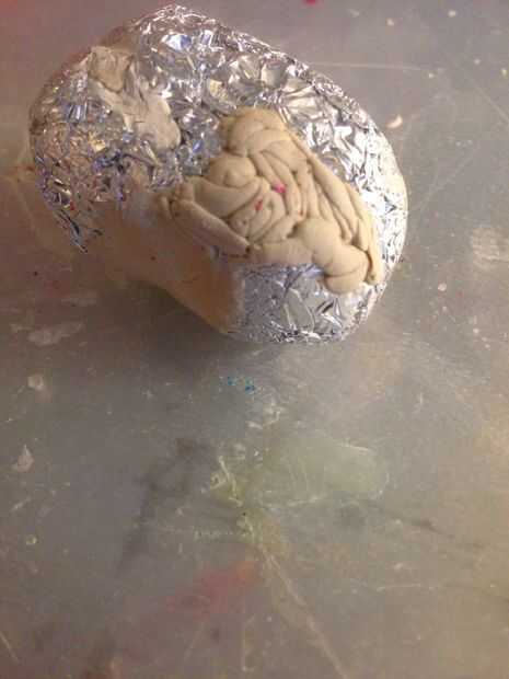 Ahora quiere rodar pequeños trozos de arcilla en cosas de pequeña cadena entonces quieres ponerlos en torcerlos y que se encrespa para que se vea como la textura de un cerebro