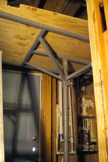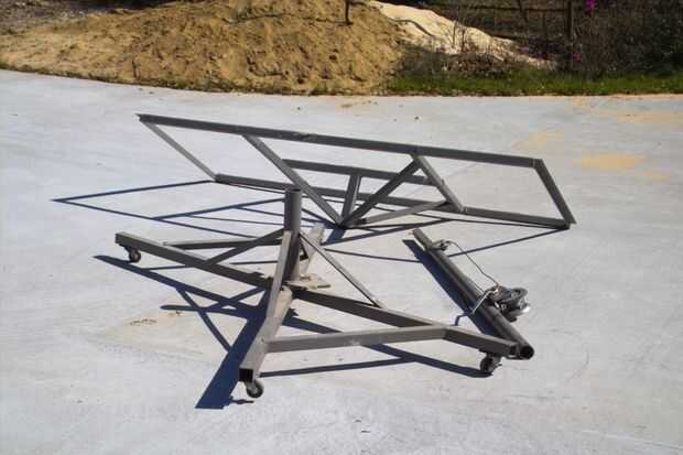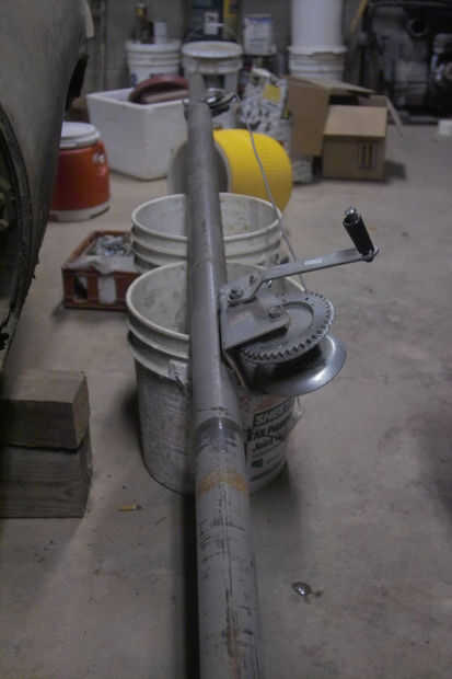 La casa cuenta con techos de 10 pies y el tiempo antes de que había alquilado un alzamiento de la roca de hoja no fue hasta que llegué a casa y se dio cuenta de que estaba destinado para techos de ocho pies y tuve que hacer montones de palets con una hoja de madera contrachapada en la parte superior para alcanzar el techo de garaje delantera y tiendo a arrastre proyectos hacia fuera para siempre, así que prueba y evitar alquilar cosas si puedo comprarlo o hacerlo el costo estimado de un alquiler. Siempre he amado a soldar cosas desde que era un adolescente, así que hizo un viaje a la yarda del salvamento de local y consiguió algunas tuberías de desecho y tubo de acero que terminó siendo unos $40 ya que usted paga por la libra. Entonces fui y compre un polipasto de cable como se en un barco de remolque para poner la cosa en y hacia fuera en el muelle y 4 ruedas pesadas y polea con soporte incluirían por unos $50.