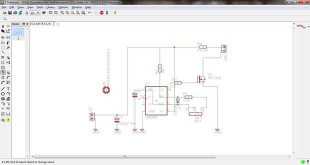 He subido mi esquema y PCB en Eagle y PDF formatos. Mi consejo principal es realmente pequeño. Puede hacer más pequeña si usas piezas SMD pero es necesario. Tablero del LED es 87x57mm tamaño (cabe perfectamente en mi caso).