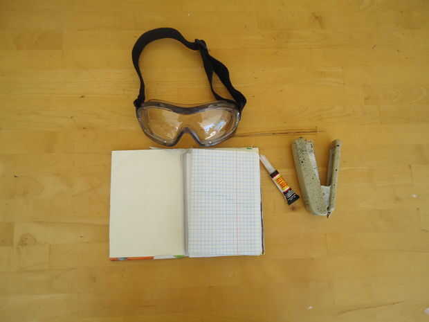 Para este proyecto necesitarás: una cubierta de libro duro, 1 pieza de cuero alrededor de 16' de largo y de 7' ancho (que es 40 por 18 cm) 15 A4 páginas de matemáticas, 15 A4 escribir páginas, 15 A4 en blanco páginas y 1 A3 transparente página en la que puede escribir con un marcador de pizarra blanca y borrar luego la escritura.