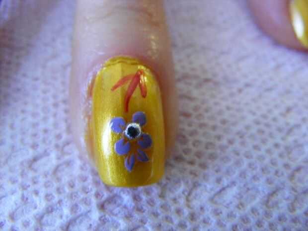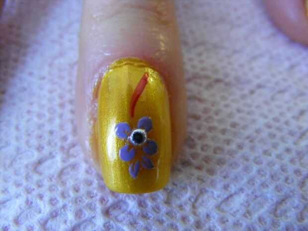 Obtener un pincel de buena calidad, 10/0 y tratar muy bien. Pintura acrílica funciona bien, porque la capa superior mancha pinturas sensibles de acetona. Si están pintando varios colores en un diseño, no todos los dedos con un color, luego otro, luego la siguiente. El acrílico se seca más rápido que el esmalte de uñas :)