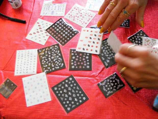 Listo calcomanías y pegatinas están disponibles en la mayoría de las tiendas de drogas, el Departamento y el dólar. Vienen en muchos diseños para que usted no tiene que ser artística. Solo pelar-n-palillo cada dedo o sólo los pulgares sean diferentes. Espere a que el esmalte se seque unas 3 horas antes de aplicar.
