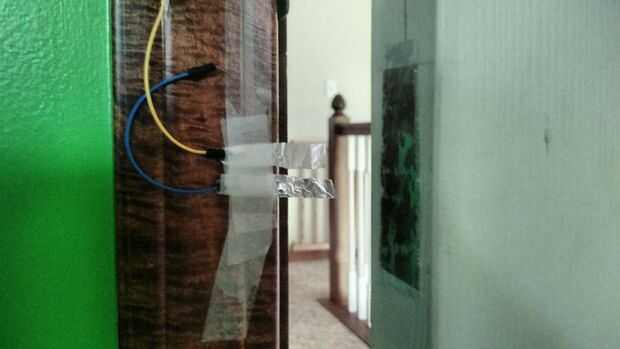 La configuración es fácil solo cinta todo como se indica y asegúrese de que las tiras de aluminio tocan la tira de aluminio de puertas. Esto corta el circuito cuando la puerta está cerrada