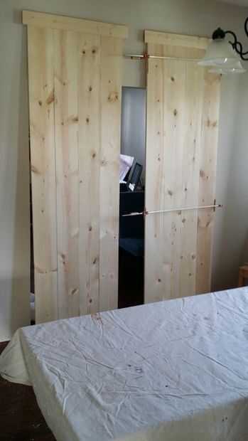 Repita el proceso para la puerta 2. En esta etapa, también até mis piezas del marco superior e inferior de la parte posterior con los tornillos de madera para mayor estabilidad (ya que mi esposa me estaba corriendo y solo tengo 2 de mis pinzas muy grandes). Una vez seco, puede encontrar que a pesar de sus esfuerzos, los tableros no son perfectamente incluso o al ras. Llamamos "carácter", o ponerse a trabajar con la lijadora (cepilladora de mano si lo cuentan).