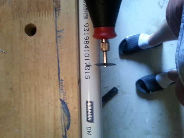 2. una vez que ha marcado donde vas a cortar, preparar Dremal/sierra con la correspondiente mordida/cuchilla para cortar el pvc.
