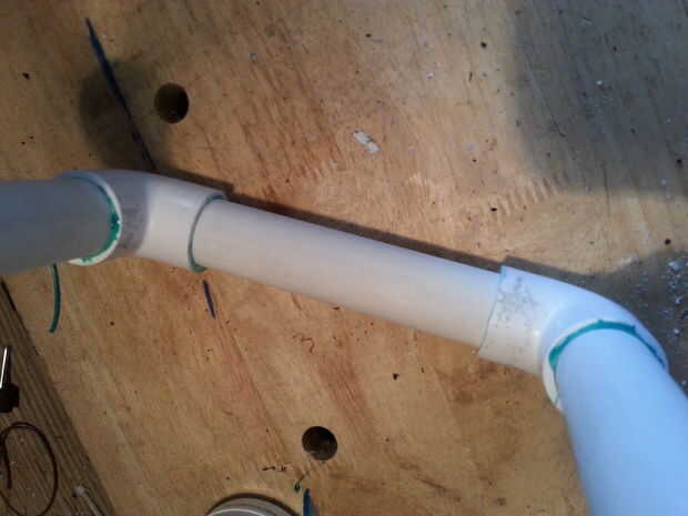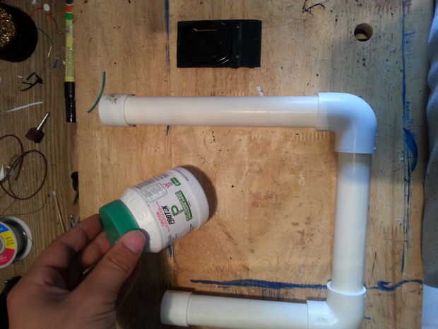 2. trabajar una articulación a la vez, aplique el pegamento en el interior de la articulación y luego deslice el tubo de pvc en, esto es cuando quieras que asegúrese de que el pvc es recto, porque cuando la seca del pegamento no podrás tomar aparte (y empezar de nuevo si te equivocas)