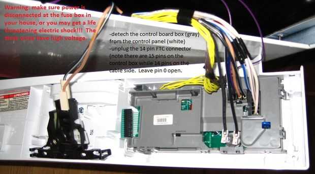 Luego otra prueba es separar la falla del panel de control de la tarjeta de control. Esto requiere que el panel de control debe sacar la puerta siguiendo las instrucciones en el manual. Asegúrese de que la energía esté apagada en la caja de fusibles para que no te de una descarga eléctrica. Luego desconecte el cable desde el panel de control para el tablero de control (un cuadro gris sobre el tamaño de 6 x 10 pulgadas). Luego vuelva a encender el poder. Una vez que la puerta está cerrada, el lavavajillas comenzará a drenar con el motor en marcha. Esto es una indicación de que el tablero de control es propiedad de funcionamiento. Tuve dudas sobre esto ya que el tablero de control aún puede ser malo incluso había pasado esta prueba, pero ese no fue el caso. Bueno, creo que el tablero de control está mejor construido que el panel de control. En mi caso, la marcha del motor que indica la falla está en el panel de control.